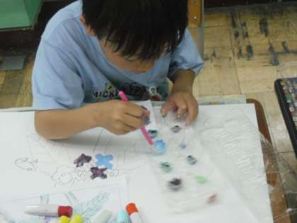 6月に合う色を水彩絵の具でつくり、作品に生かしていました。