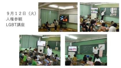 9月12日(火)人権参観を行いました。各学年では、道徳、社会、学活の授業を通して,人権や文化などについて考えました。