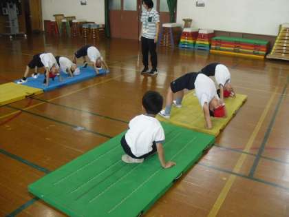 保育園や幼稚園でマット運動を経験している子も多く、楽しそうに活動していました。