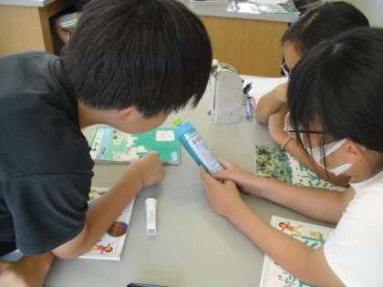 身近なもの”食器用洗剤、ハンドソープ”などには、「酸性、中性、アルカリ性」などの表記ががあるということを知りました。そこで、今まで調べてきた水溶液は何性になるのか実験を行いました。初めてリトマス紙を使って色の変化を見ながら、それぞれの水溶液を分類することができました。