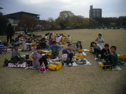 お昼ごはんは、梅小路公園でお弁当をいただきました。