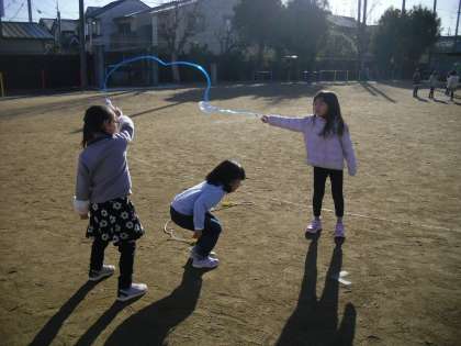 最後になわを股の間で止めるのは難しそうでしたが、歌いながら楽しんで取り組み、成功したときにはとても盛り上がっていました。