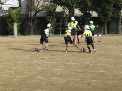 体育科「サッカー」の学習が始まりました。まずは、チームに分かれてゲームを楽しみました。「思ったところにボールを蹴ることができなかった。悔しい。」、「もっとゲームがしたい!」など、いろいろな思いがあったようです。これからの学習では、たくさんゲームをしたり、チームで作戦を立てたりしながら進めていきます。