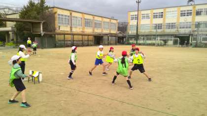 体育科では、最後の単元「ポートボール」に取り組んでいます。まだ肌寒いですが、元気に外で体を動かしています。