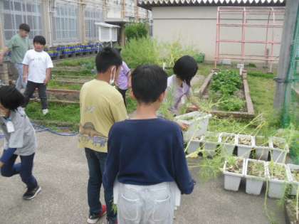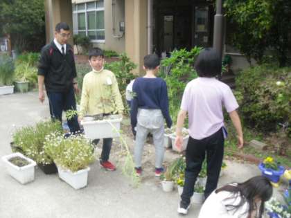教頭先生からプランターや植木鉢を動かすのを手伝ってくれないかというお願いを受け、5年生の何人かが昼休みを返上して手伝ってくれました。自分の時間を惜しんで、誰かのために働くことができる姿が素敵でした。そういった姿が学校全体にどんどん広がっていってほしいと思います。