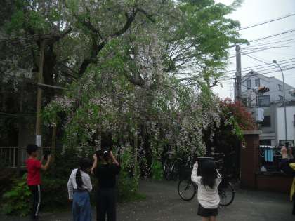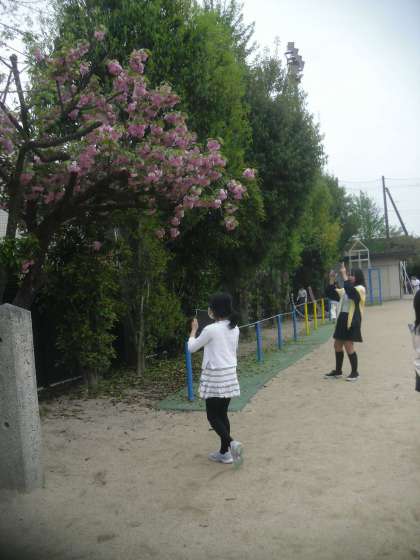 学校内にある春の生き物を見つけて、タブレットで写真を撮りました。