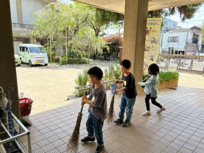掃除をする姿はさすが2年生!自分の決められた場所や役割に分かれて黙々と掃除をしていました。