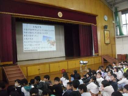 5月3日の憲法記念日であるということから、校長先生から憲法の3大原則や、身近なきまりについてお話がありました。