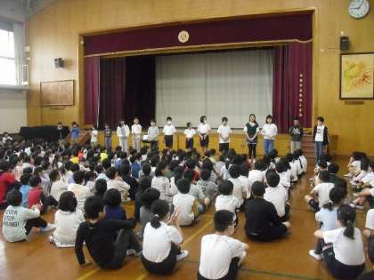 朝会の後には児童会の認証式を行いました。3年生から6年生までの代表児童の紹介がありました。