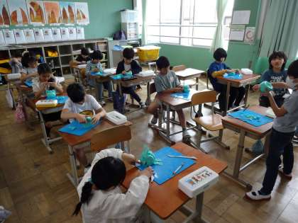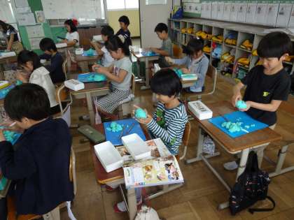 「切ってかき出しくっつけて」の学習で、道具の特徴を生かして、粘土で作品を作りました。みんな初めて触れる道具での活動を楽しんでいました。だんだんと形が見えてくると、思い思いに作品を作っていました。