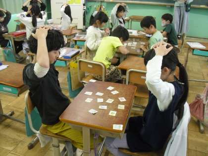カードゲームを通して天気や遊びの言い方を学ぶことができました。