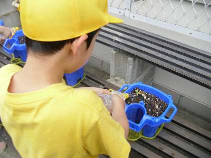 先日、まいたあさがおの種から芽が出始めた子もいます。