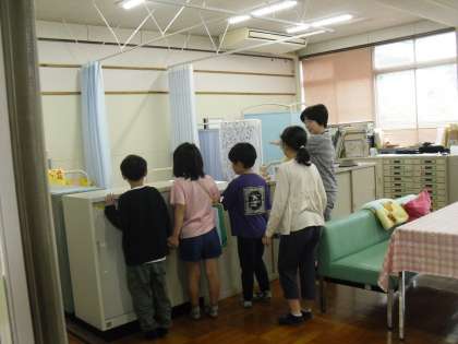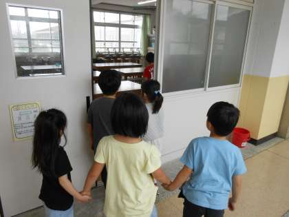 生活科の学習で1年生に学校の中を案内しました。「この教室は5年生のお兄さん、お姉さんになったら使うんだよ。」「学校には慣れてきた?」と1年生に話しかけながら案内していました。