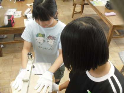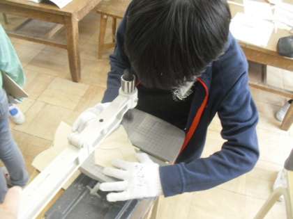 図画工作科「切り分けた形から何つくる?」の学習では、木材を切り分け、パズルを作りました。4年生のときに使った「横びきのこぎり」や「糸のこぎり」と違って、「電動糸のこぎり」を使って取り組みました。「電動糸のこぎり」は便利な一方で、危険も伴う道具ですが、安全に気を付けて活動することができました。