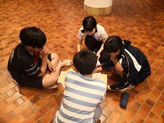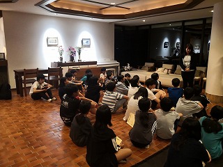 夕食後、反省会を行いました。一日目のグループでの活動の振り返りをしました。
