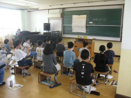 音楽科では、歌やリコーダーの学習をがんばっています。タンギングに気を付けて演奏していました。
