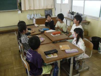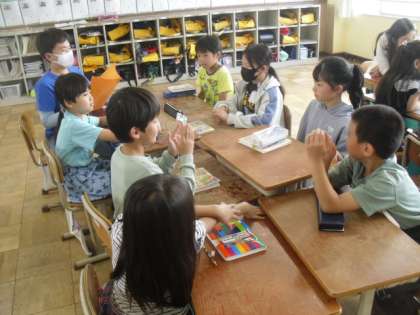 たてわり顔合せの会がありました。たてわりグループで集まり、自己紹介をしたり、たてわり遊びの遊びを決めたりしました。これから、たてわり遊びやたてわり遠足で、さらに仲を深めてほしいと思います。