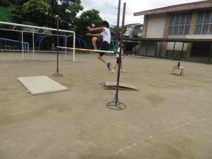 体育では「走り高跳び」の学習をしています。今日は高さを変えながら、よりよい記録が出せるようにチャレンジしました。得意な子は120〜140センチくらいを跳んでいます。ロイター板も使いながら自分の身長くらいの高さを跳んでおり、驚きました。苦手な子もお互いにどうすれば跳べるかを声をかけ合いながら頑張っていました。