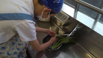 家庭科「ゆでる調理で、おいしさ発見」の学習では、小松菜で「青菜のおひたし」と、じゃがいもで「ゆでいも」を作りました。初めての調理実習だったこともあり、野菜を丁寧に洗ったり、使い方に気を付けてガスコンロで火をつけたり、慎重に活動する様子が印象的でした。