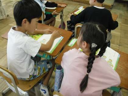国語科「わけをはなそう」では、友達の見たい動物とその理由をお互いに聞き合いました。