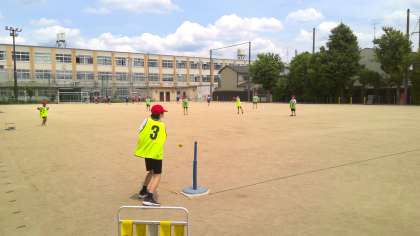 「ベースボール」の学習では、初めて試合をしました。初めて試合をしたので、ルールにも戸惑うような様子もありましたが、楽しく活動することができました。