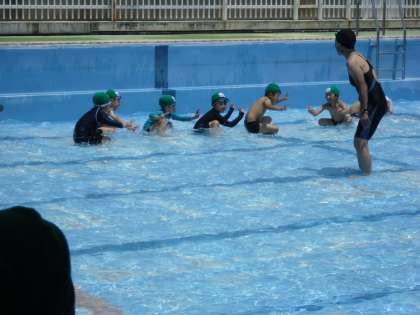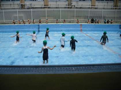 1年生は、30cmくらいの低水位で水慣れをしました。