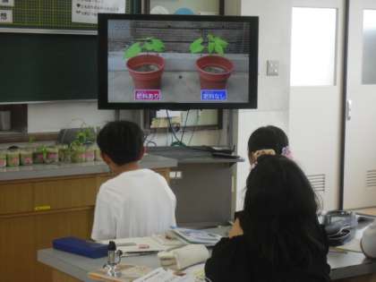 理科では、植物の成長に何が必要なのか、様々な条件で育てたインゲンマメを観察して調べました。