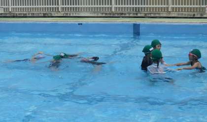 「水遊び」では、水にもぐったり浮いたりする水遊びを楽しんでいます。