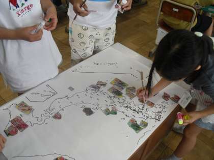 スーパーのチラシを使って、産地を調べました。調べてみて、「北海道にお肉が多いな。」「中央に野菜が集まっている。」「四国・九州に夏野菜が多いのはどうしてだろう。」など様々な気づきから疑問がうまれました。その疑問を学習を通して調べていこうと思います。