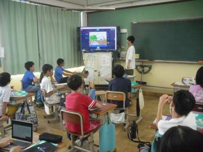 これまでの単元で学んだことをふまえて、生物は空気と水とどのようなつながりがあるのかタブレットを使いまとめた後、交流をしました。