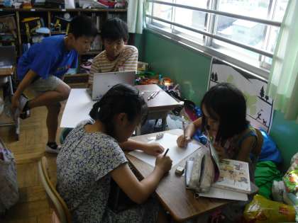 国語科「新聞を作ろう」の学習では、話題を決めて、取材やアンケートを取り、新聞にまとめました。イラストやグラフや写真なども活用しながら、見てもらうことを意識して新聞作りを進めていきました。