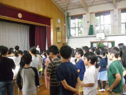 暑い中でしたが、子どもたちは速やかに体育館に集まり、静かに校長先生の話を聞くことができました。