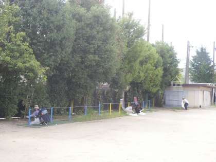 その後、PTAの方々に校庭の草むしりをしていだきました。夏休みの間に伸びた草を,道具を使い,根から掘り起こし抜いてくださいました。