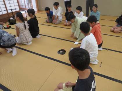 今日は1組で茶道体験をしました。子どもたちの中には保育園の頃にやっていた子もいたようですが、ほとんどの子が初めてでしっかり話を聞いて取り組んでいました。なかでもお茶を点てるのが特に難しかったようで、みんな頑張っていました。