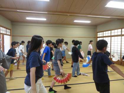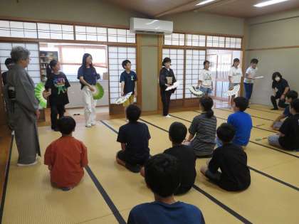 振り返りでは「手と足の動きが違うので難しかった。」、「桜が散る動きが上手にできた。」、「扇子1つでいろいろなものを表現できるのが驚いた。」など初めて体験したことで学びや驚きがたくさんあったようです。