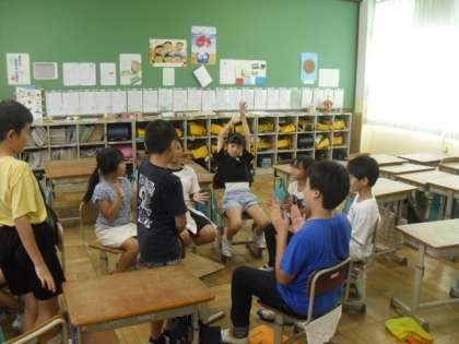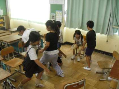 教室では、「リーダーさがし」や「なんでもバスケット」などで楽しんでいました。