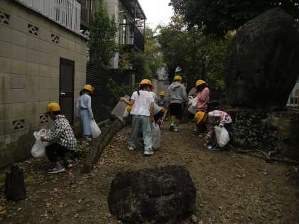 カエデの実を見つけて、投げてくるくる回って落ちる様子をみんなで楽しみました。