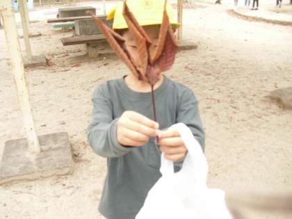 赤や黄色に変わったきれいな葉っぱや自分の顔くらいある大きな落ち葉、帽子をかぶったどんぐりなど、たくさんの秋を見つけることができました。