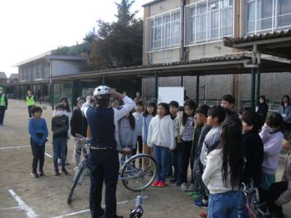 警察の方に交通ルールを教わり、実際の道を想定して自転車に乗りました。