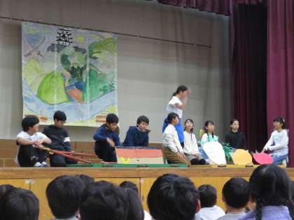 今日は学習発表会を行いました。6年生は織田信長を中心とした歴史劇をしました。子どもたちは当日までグループごとに相談しながら小道具を作ったり、セリフや立ち位置を考えたりと、とても頑張っていました。京都にも歴史ある文化や建物が残っていること、今に伝わるものがこんなにも前からあることなど、見ている人に伝えたいことが伝わるようにどうすればよいかをよく考えていました。