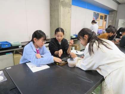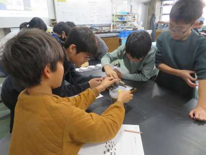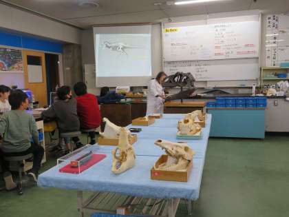 今日は科学センター学習を行いました。物理と地学から授業を選択し、希望した授業を受けました。地学では、大昔の生物がどのように復元されるのかを考えました。化石を見たり、レプリカを作ったりしながら生き物について楽しく考察していました。