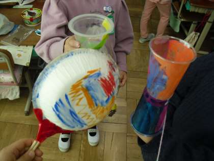 けん玉、どんぐりゴマ、でんでん太鼓やくじ引き、ネックレスなど、それぞれ秋らしい楽しい作品ができました。今週、「あきとともだちパーティー」に6年生を招待し、一緒にみんなで遊びます。
