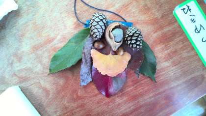 小柳公園や船岡山で見つけた秋のものを使って、楽しい遊びや飾りをつくりました。