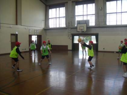 体育科では、「バスケットボール」の学習をしています。バスケットボールに親しみのない子どもたちはボールの扱いや動きに慣れていき、親しみのある子どもたちは授業の特別なルールに慣れて、友だちを生かすようなプレーを期待しています。まずは、バスケットボールの楽しさを目一杯感じてほしいです。