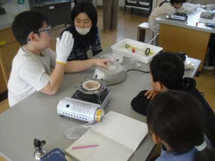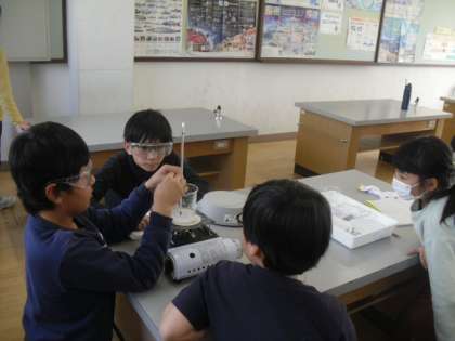 理科「もののとけ方」の学習では、温度が高くなると、もののとけ方はどのようになるのかについて調べました。今回も、食塩とミョウバンを溶かして実験しました。いろいろな実験器具を使い、安全に気を付けて調べることができました。