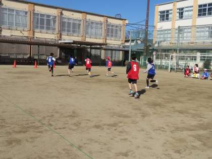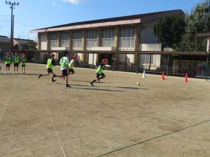 今日から体育ではサッカーの学習がはじまりました。とても寒い中でしたが、たくさん走ってたくさん動いて汗をかいていました。