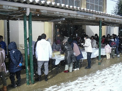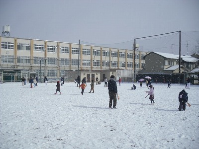 雪が降る中、寒さに負けず子どもたちは楽しそうに遊んでいました。