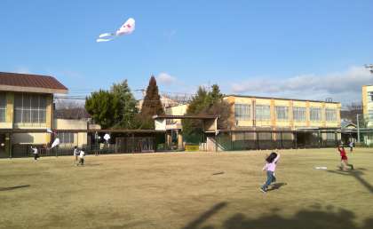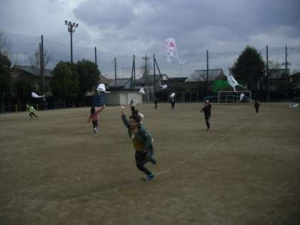 みんなで運動場に出て凧あげをしました。