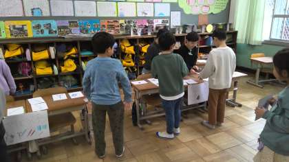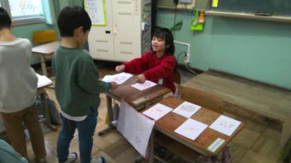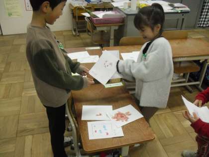 お店屋さんごっこをするために、友達と相談しながら、お店の名まえと商品を考え、準備を進めてきました。