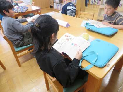 今日は司書の先生に図書館の使い方や本について教えていただきました。分類番号や検索の仕方を知ったので、これから本を探すときにいかしてほしいと思います。また高学年になり、今年から読書100冊だけでなく、10000ページを目指そうというお話がありました。さまざまな種類の本を読んだり、お気に入りの本を見つけたりして読書を楽しんでほしいと思います。